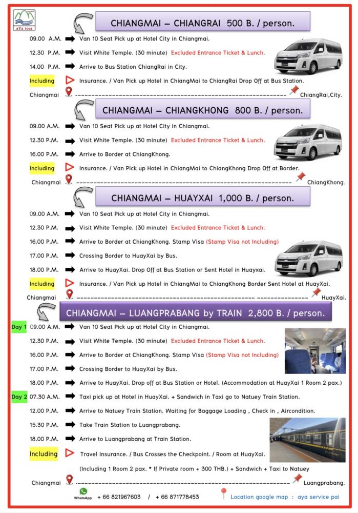 Chiangmai to Luangprabang by Train 2,800 baht./person