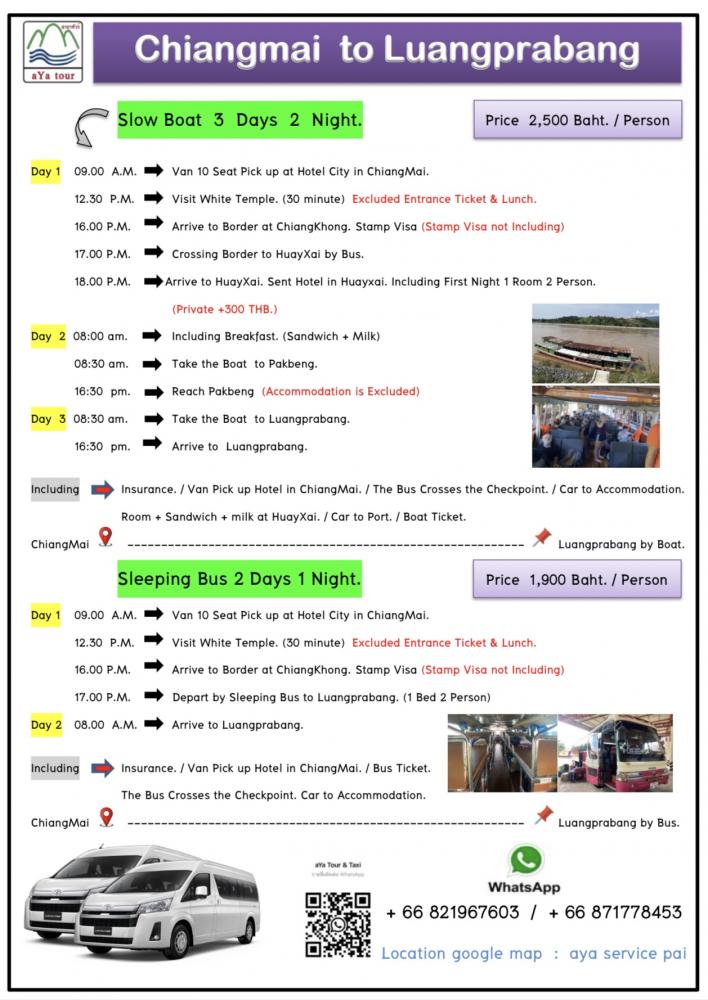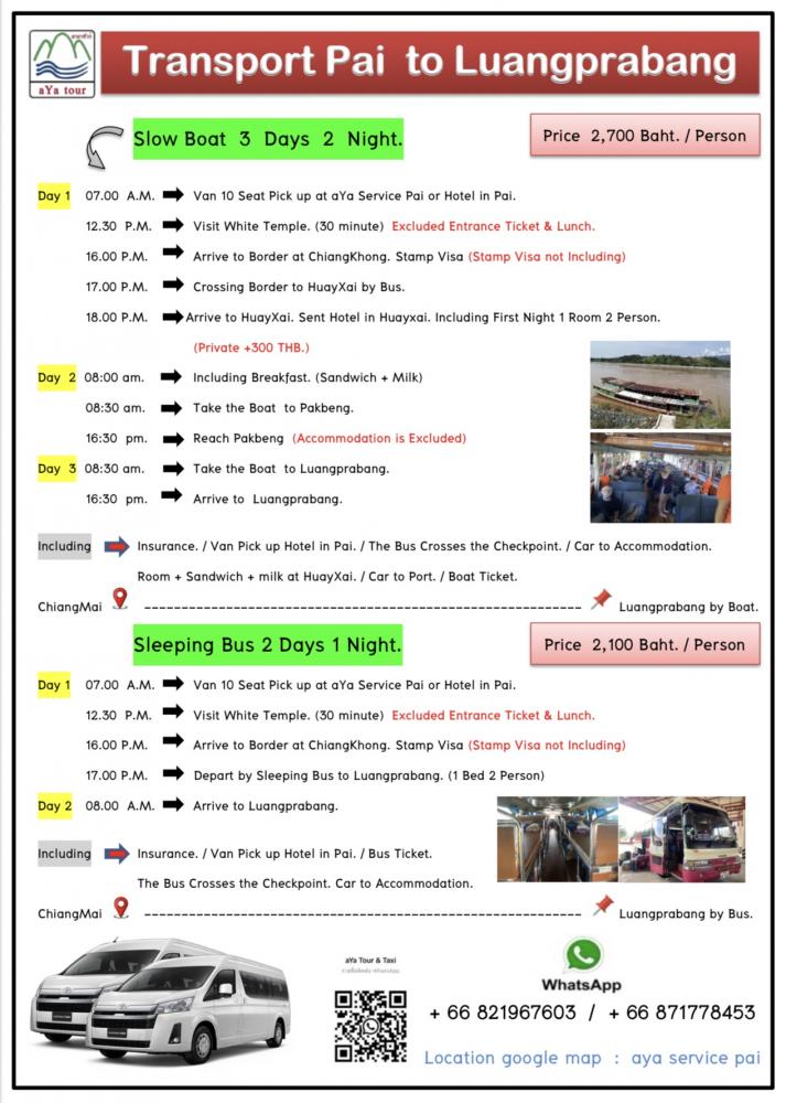 Pai to Luangprabang by Slow Boat 2,700 baht. / person