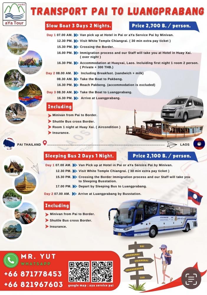 Pai to Luangprabang by Sleeping Bus 2,100 baht. / person