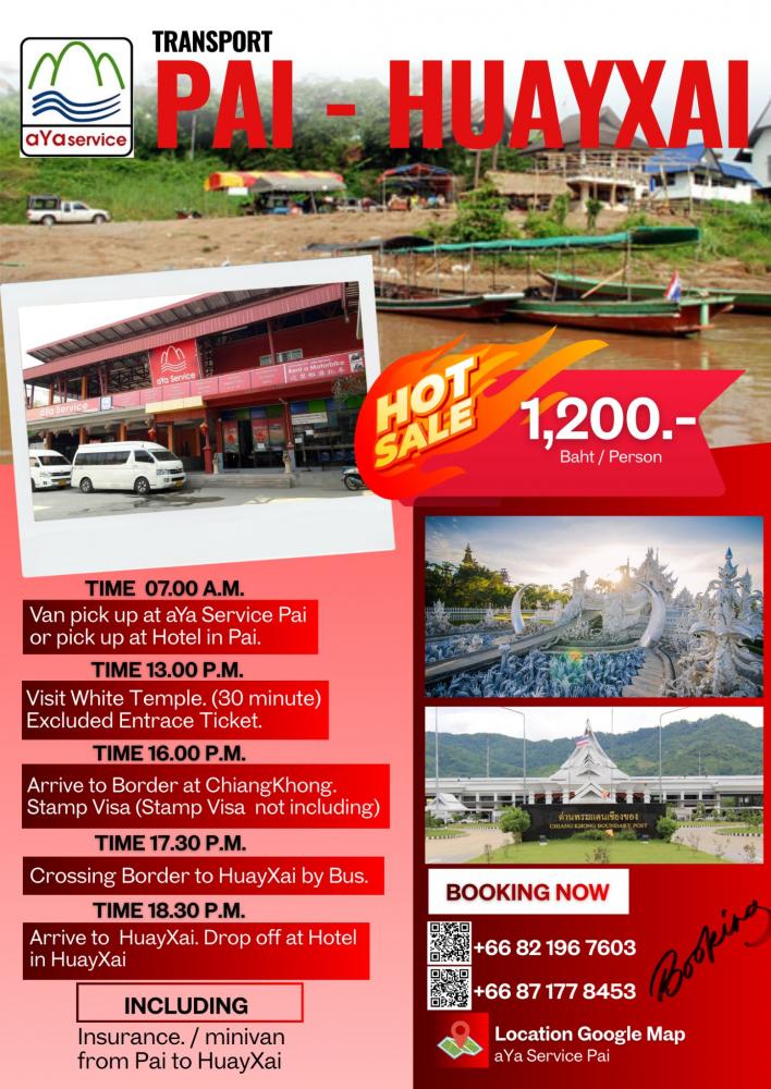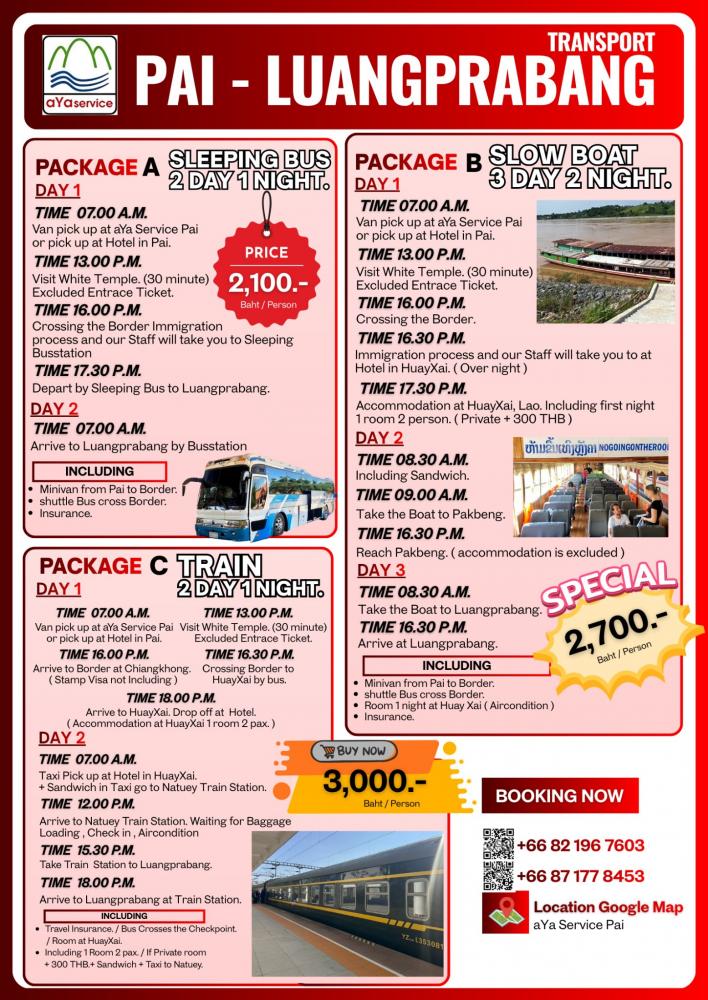 Pai to Luangprabang by Slow Boat 2,700 baht. / person